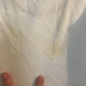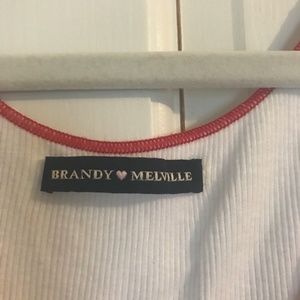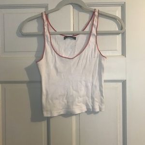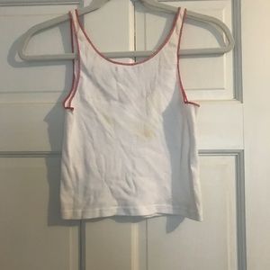 This cute tank top was only worn once! It is basically brand new and super great for summer. The red trim is a nice pop of color. Brandy is one size but this would fit an XS/S best. There is a yellowish stain patch on the back but I think it will come out with bleach or more washing.