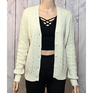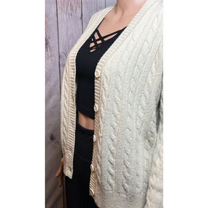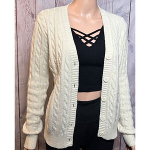 Brandy Melville Women's Wool Cable Cute Sweater Cardigan Beige Size M