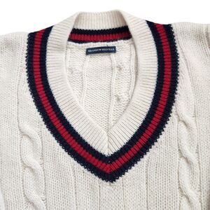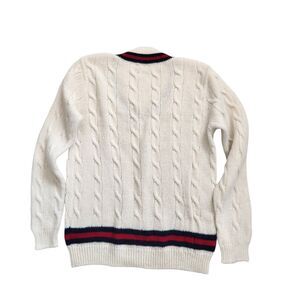 Brandy Melville Wool Blend Cable Knit Sweater-V Neck-Stripe Trim-Varsity-Prep-OS