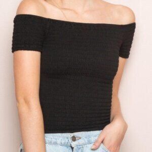Brandy Melville black Charlene shirred off-the-shoulder top