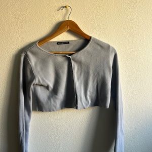Stylish cropped cardigan. Button-up front. Soft and comfortable fabric.