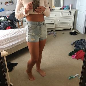 Light wash, high waisted, distressed shorts from Brandy Melville. Never worn! Perfect condition