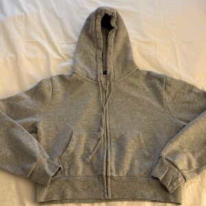 Brandy Melville Christy basic zip up hoodie in Heather gray with 2 pockets and a drawstring hood.
