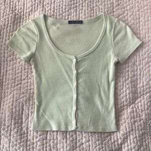 Elevate your wardrobe with this stylish light green ribbed top from Brandy Melville. Featuring a flattering scoop neckline and button-up front, it's perfect for any casual outing.