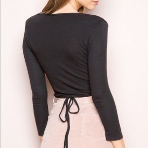 Black cropped wrap front top. Stretchy material. Super trendy and cute. Wear with a cami or bandeau underneath or as is!