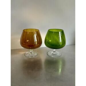 Brandy Snifters Mid Century Modern Oversized-Green / Amber Set of 2-Vintage
