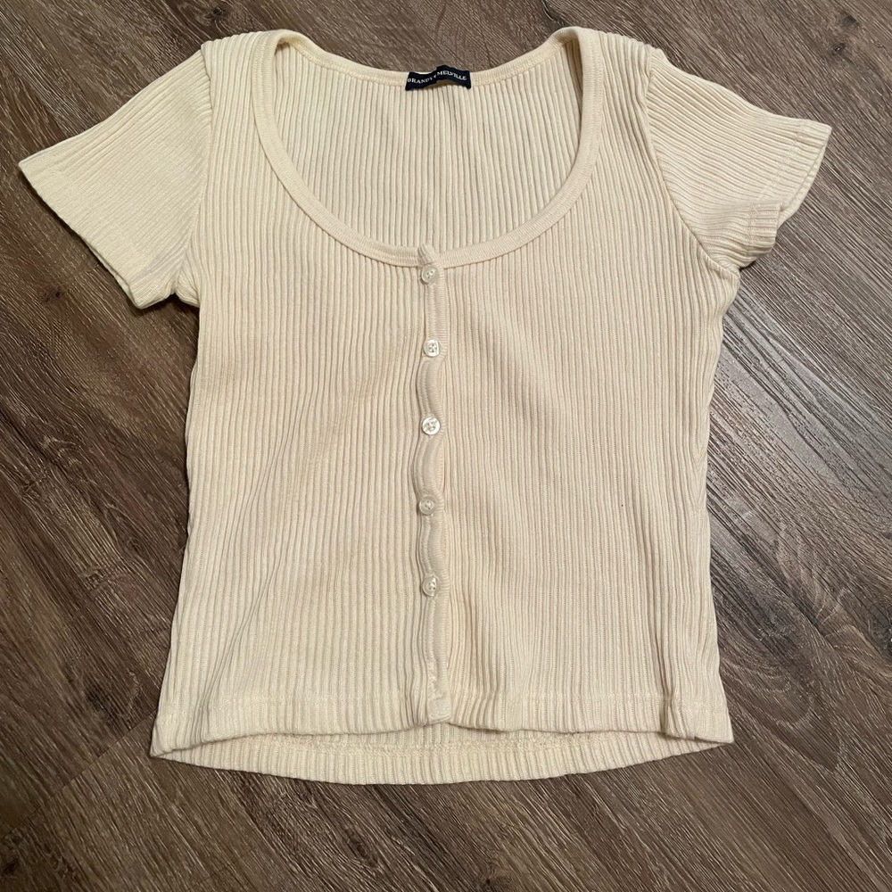 Brandy Yellow Ribbed Button Down Top