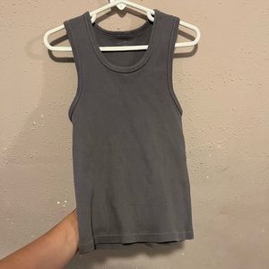 Soft ribbed cropped cotton tank with matching trimmings and a raw edge hem.