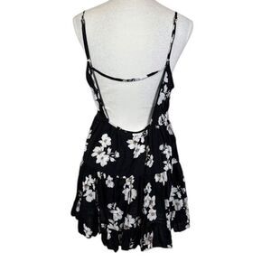 Brandy Melville Jada Mini Dress Backless Strappy Black White Floral ONE SIZE - be sure to check measurements. Adjustable straps. Excellent condition. See photos for details and unstretched measurements. Shop my closet and bundle multiple items for discounts and one shipping fee! tiered ruffle, strappy, sexy, playful, flirty, could also be a cute babydoll dress tunic, beach cover up, pool, summer