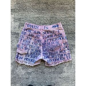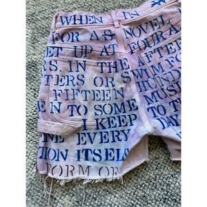 John Galt by Brandy Melville purple dyed shorts with all over writing. High waist. Pockets. 100% cotton. Approx 13” inch waist laying flat. Great condition!