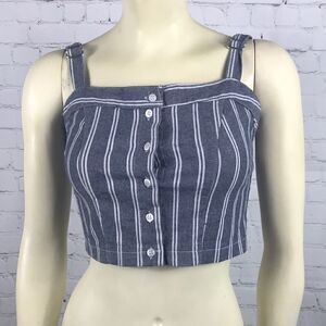 Brandy Melville Sz S/XS Button Halter top Denim Blue and white Oxford cloth. Adjustable straps. Super Cute EUC