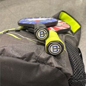 Branton pickleball set featuring a stylish black bag and vibrant paddles. Includes orange and yellow balls. Never used.