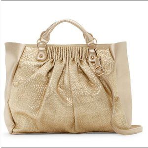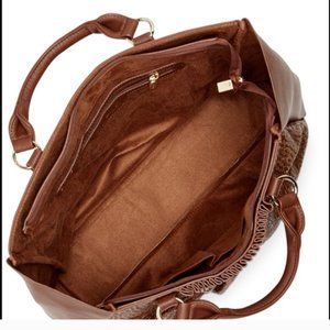 Classic weekender in woven texture faux leather. This travel-ready bag is packed with pockets which is a choice pick for style-savvy storage.