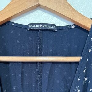 Brany Melville Blue Floral Wrap Robbie Dress with V-Neck and Flutter Sleeves