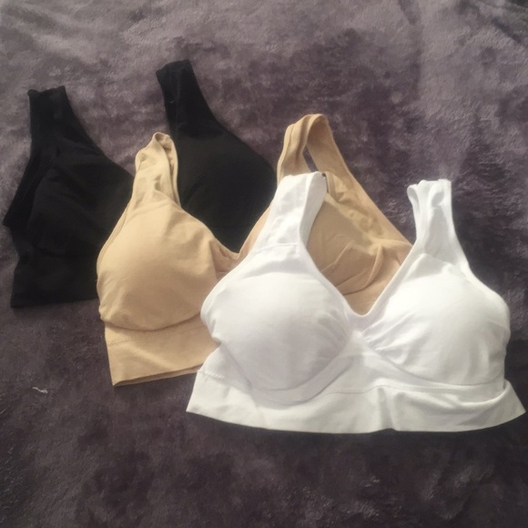 3 sports like style bras. Black, beige, white. Ordered off of choicest1, a company link on Facebook. They don’t have the support I need. Came from overseas, China I believe so sizing runs smaller than normal. I am usually a large/XL. They fit but again not enough support. Brand new, only tried on white one.