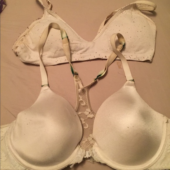 2 bras. Both A cup. Very used and stained but still could be worn.
