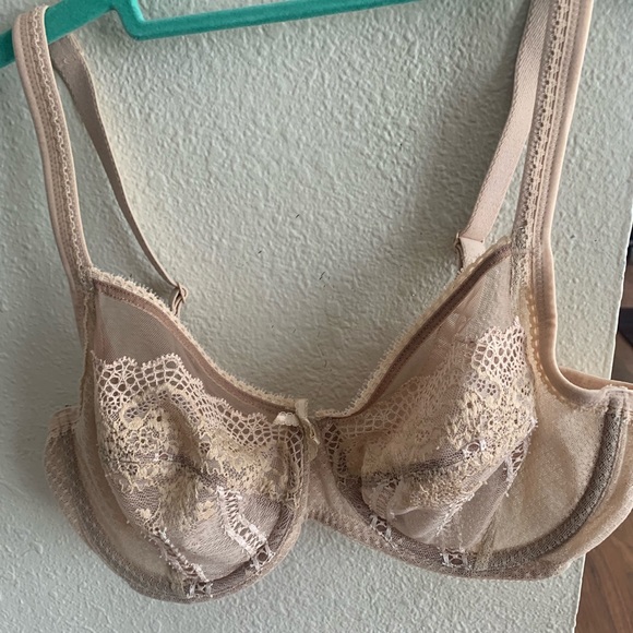 3 like new wacoal 36 D bras! One lace nude, one solid and sheer nude and one black solid and sheer. All have underwire and no padding $10 each or $25 for all 3!