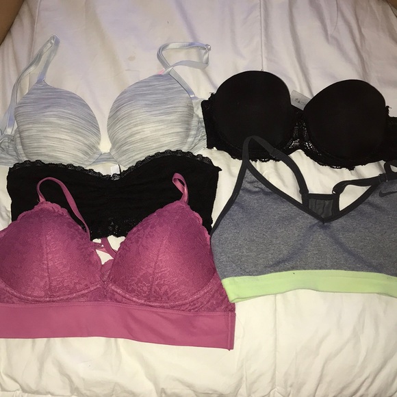 Bras from pink, h&m, and Nike, all gently used, the light green band around the sports bra is faded, comment for sizes+prices, can be sold separately
