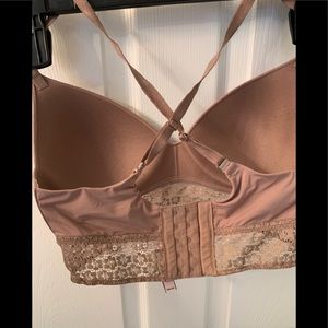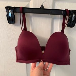 Bundle Victoria’s Secret bras. 3. Two tshirt bras and one lace. Burgundy and cream have no underwire. Black lace on has light padding and underwire