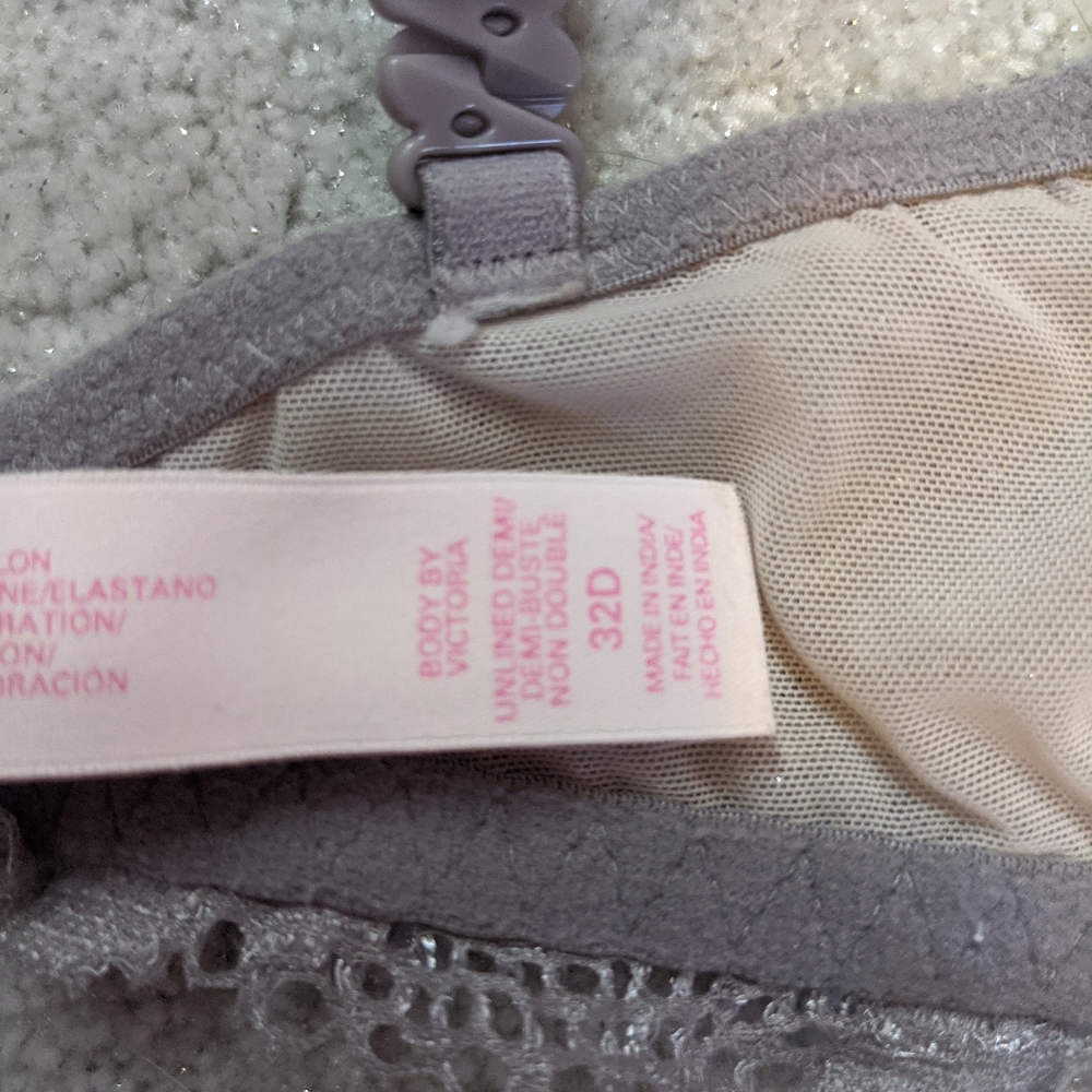 Black, gray/lavender, 32D, lace wire bra
