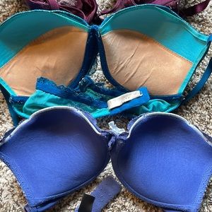 1 Turquoise lace push up VS 32 C, used condition, has some pilling, some inside fabric some separated