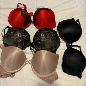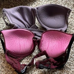 1 Maroon Push up VS 32 C very used condition, has pilling, right strap I sewed together a little due to fraying, the middle of the bra has a rip but could possible be sewed