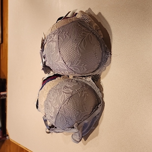 6 Bras all size 40C. White, black, maroon, blue, cream, and light gray. All are a solid color.