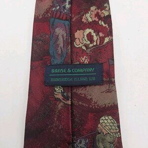 Brase Company Bainbridge Island WA Tie Golfer Vintage Wide Silk Tie Red Gold USA