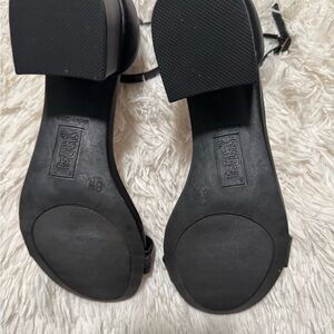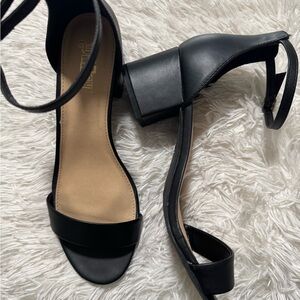 Chic black heels with ankle strap. Sleek design for versatile wear. Ideal for day or night.