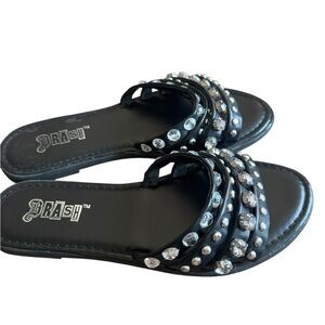 Brash Black Slide Sandals with Rhinestone & Stud Detail – Size 6