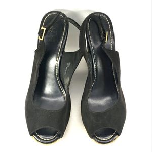 Brash Black, Slip On, Peep Toe, Slingback, Espadrille Platform Wedge. Women's 9M