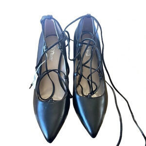 Brash Black Tie Up High Heels size 8 strappy nwt pumps