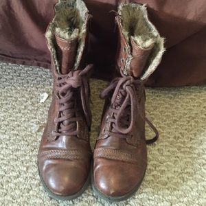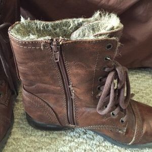 These combat boots are fairly new, no damage, brown, lace up with side zippers