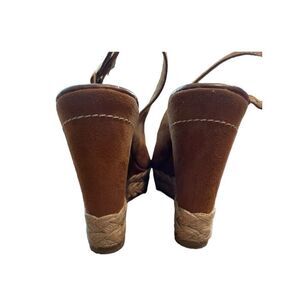 Brash Espadrille in a Brown Suede Leather. It is a wonderful Platform Wedge Peep-Toe Sandal. It is great for casual days at work, school, date night, night out with the girls, and Family Dinner paired with everything from a tank top and jeans to a maxi dress. They would make a great Christmas Hanukkah Valentine’s Day Birthday or any Holiday gift!