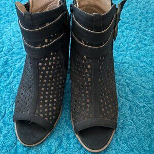 Brash Peep Toe Block Heel Cut Out Black Ankle Booties Women's Size 10, preowned but in excellent condition