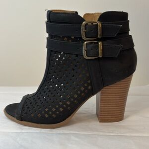 Brash Peep Toe Laser Cut Side Zip Ankle Heeled Boot Bootie Women Size 8.5 Black