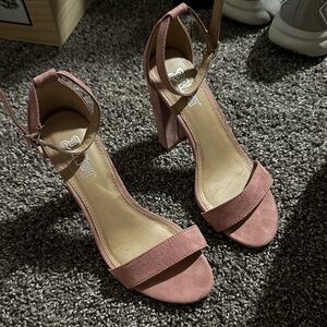 Chic pink suede heels with a sturdy block heel. Ideal for adding flair to any outfit. these are a dusty pink