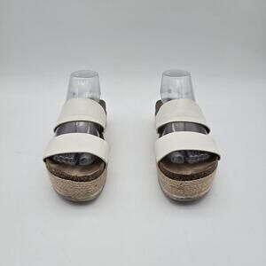 Brash Sandals Womens 8 White Slip On Leather Espadrilles Platform Shoes Twin