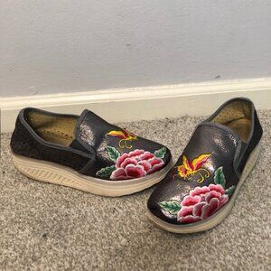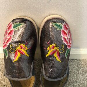 Brash Silver Floral Embroidered Slip-On Flats – Size 7.5