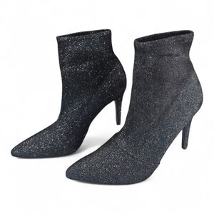 Brash Spicy Sparkle Black Glitter Pointed Toe Sock Booties Boots Size 10