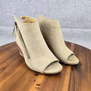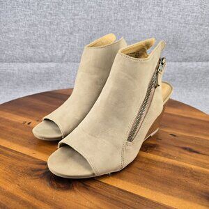Brash Tan Peep Toe Wedge Booties With Zipper Closure - Womens Size 8.5 Shoes