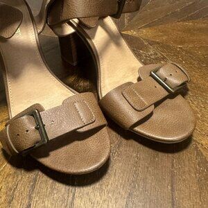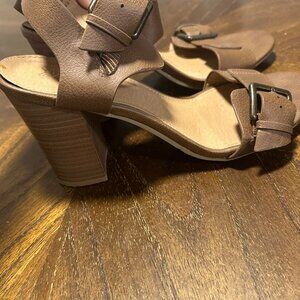 Brash Taupe Tan Block Heel 4 inch Sandal Strappy Women Size 8