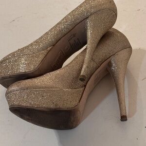 Thank you for looking at these used good condition women's size 8 color gold Brash Women's Sexy Gold Glitter High Heel Shoes steamed before shipping