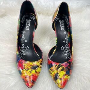 Brash | floral, daisy pointy toe pump 6.0 ,3 1/2“ heel colorful ,tropical.