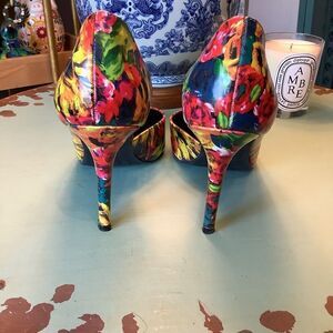 Brightly colored, floral stilettos with 4” heels. All man made materials. Great condition. Size 8.5.