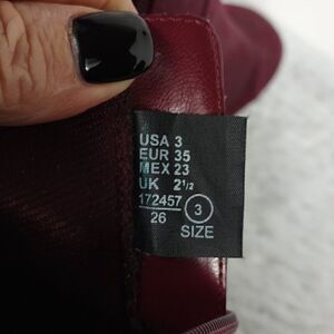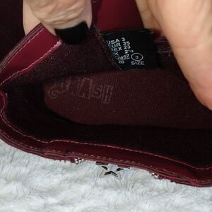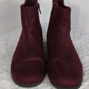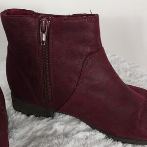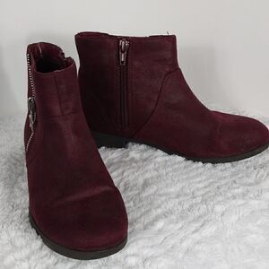 These Brash faux suede maroon booties are a size 3. They have a faux zipper on one side with silver star charm and real zipper on other side. Rubber soles with 1" heel. Pre-owned and in excellent condition. All offers welcome.