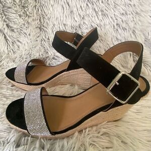 Open tie adjustable ankle strap rhinestone adorned across tie strap