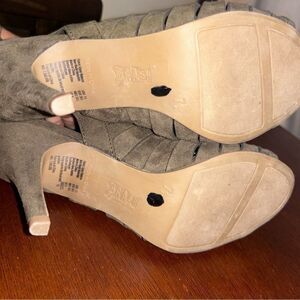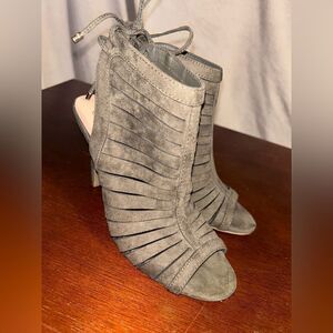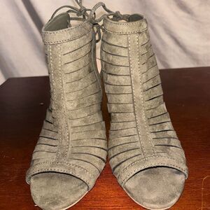 Size 7.5. Olive green suede. Lace up in back. In excellent condition no flaws