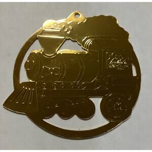 Brass 2.5" Ornament Gold Metal Etched Train Engine Teddy Bear Gloria Duchin