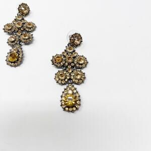 Brass Amber Tone Chandelier Embellished Gem Drop Earrings Evening Bridal Fashion